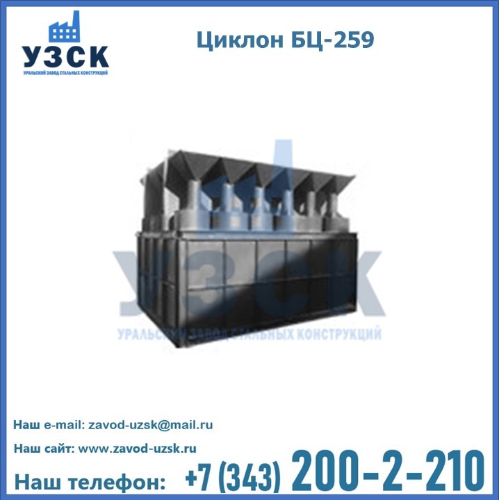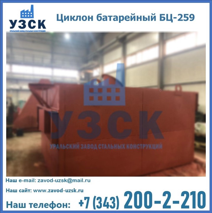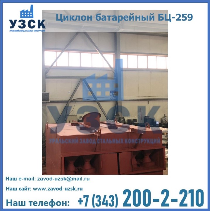 Приобрести качественное оборудование, в том числе, циклоны БЦ-259, можно в компании УЗСК в Улан-Удэ. Мы предлагаем долговечную и надежную продукцию по приемлемой цене. Заказать и купить циклоны или другие изделия высокого качества можно через сайт Уральского Завода Стальных Конструкций, или позвонив по указанному в разделе «Контакты» телефону.